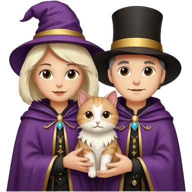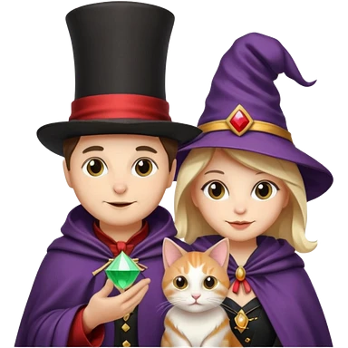 magician couple and their pet cat emoji | AI Emoji Generator