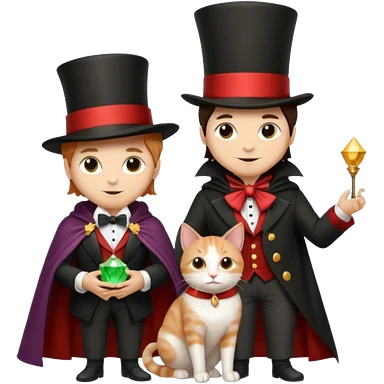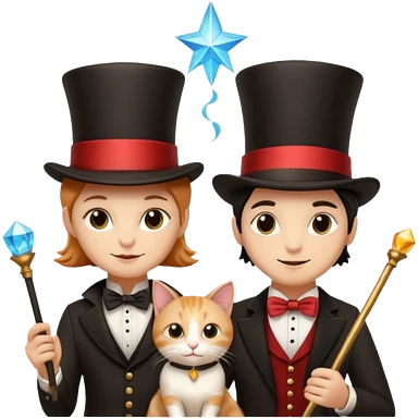 magician couple and their pet cat emoji | AI Emoji Generator