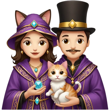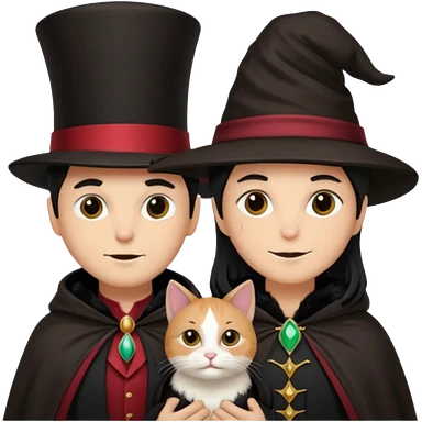 magician couple and their pet cat emoji | AI Emoji Generator