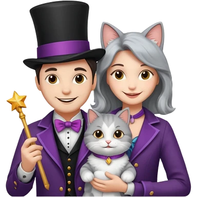 magician couple and their pet cat emoji | AI Emoji Generator