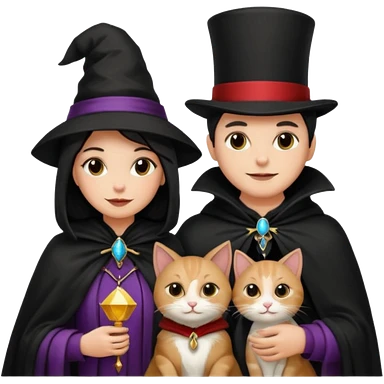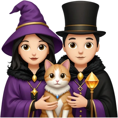 magician couple and their pet cat emoji | AI Emoji Generator