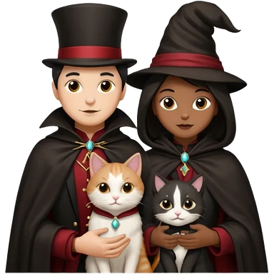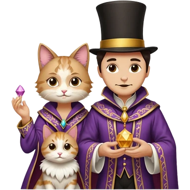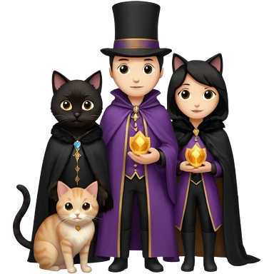 magician couple and their pet cat emoji | AI Emoji Generator