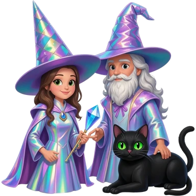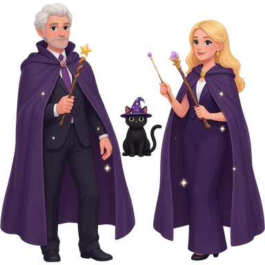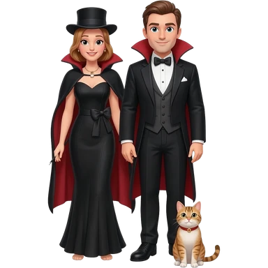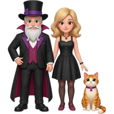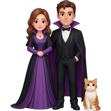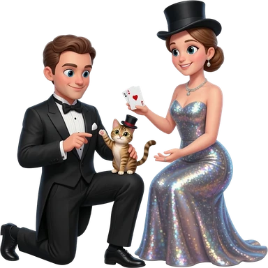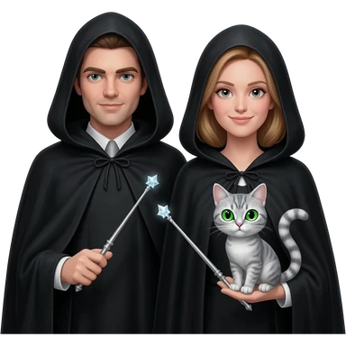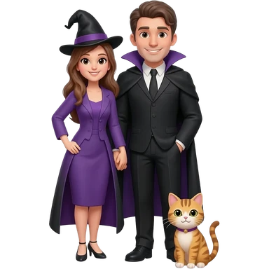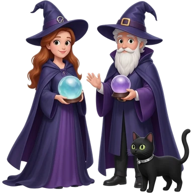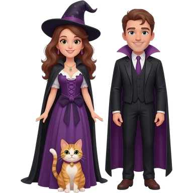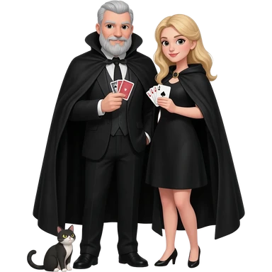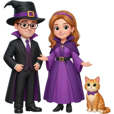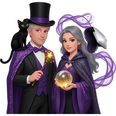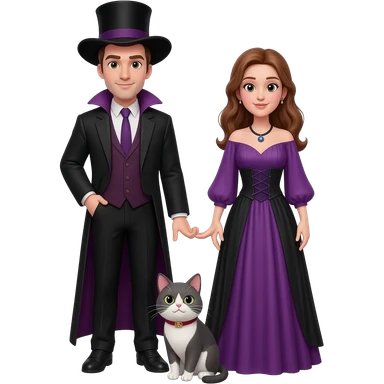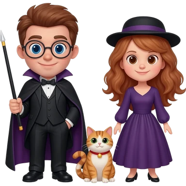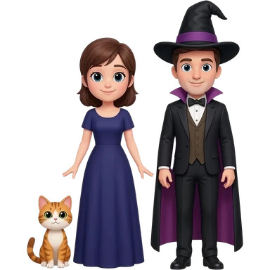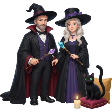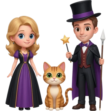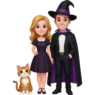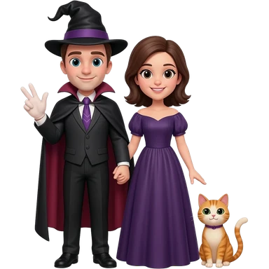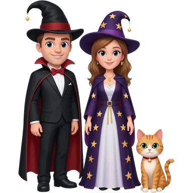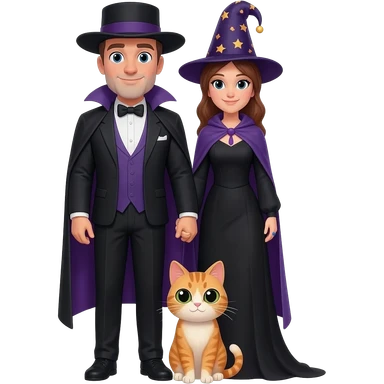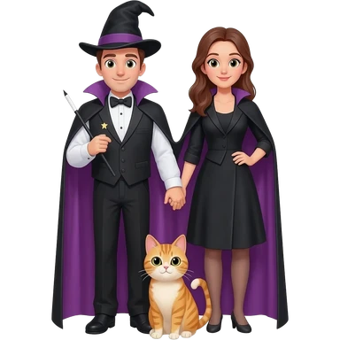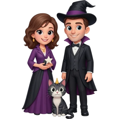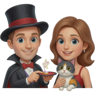 magician couple and their pet cat emoji