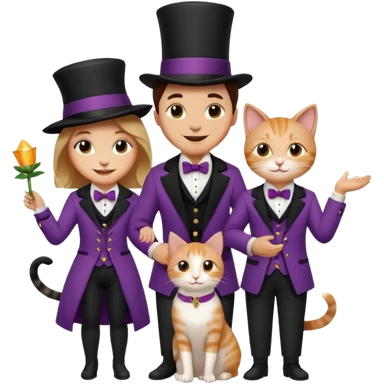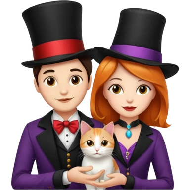 magician couple and their pet cat emoji