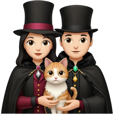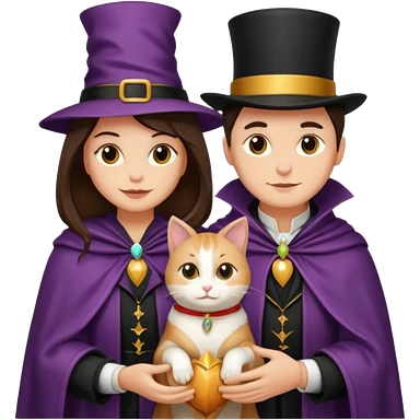 magician couple and their pet cat emoji
