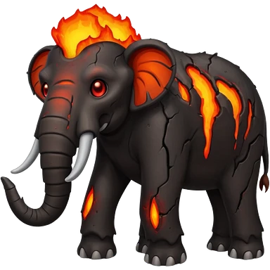 Magma+🦣+lava and cracks into a living creature with glowing red eyes I call lava mammoth 🦣 {hellephant} emoji | AI Emoji Generator