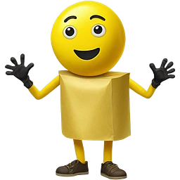 Paper half magnetic yellow m&m costume with the hands and feet not actually attached to the body and feet fused with each other emoji