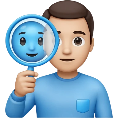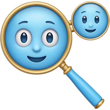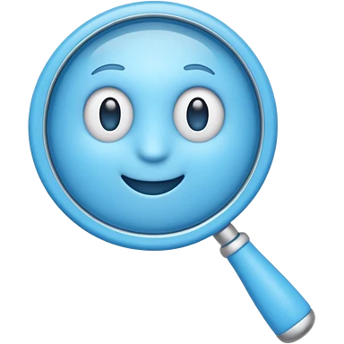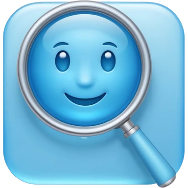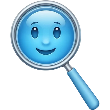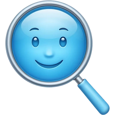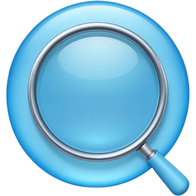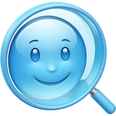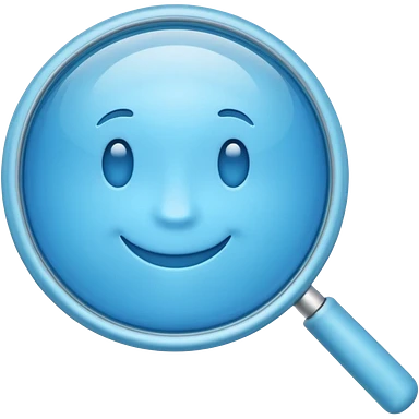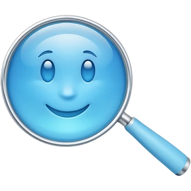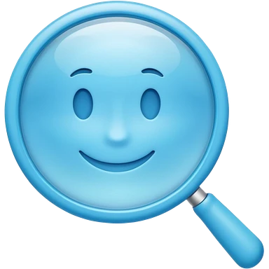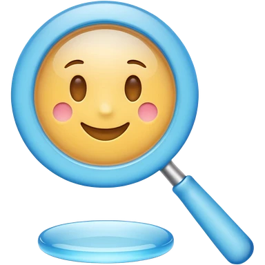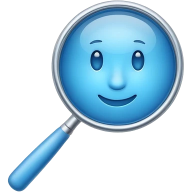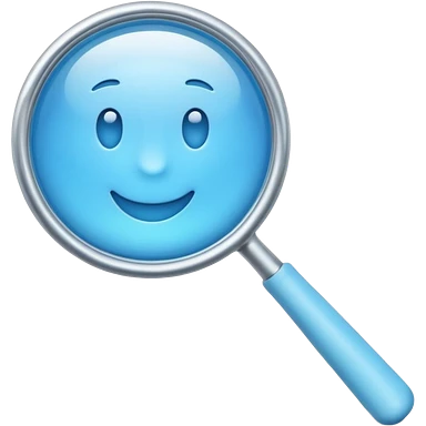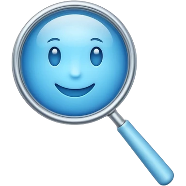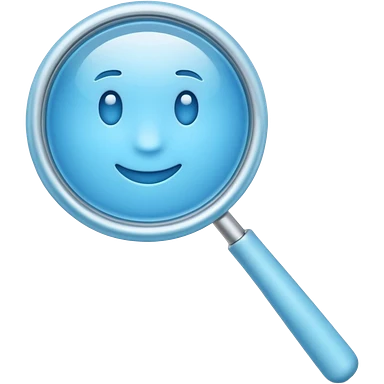 A 3D emoji-style magnifying glass, smooth rounded shapes, soft gradient blue ring, glossy plastic material, subtle highlights and reflections, simple minimal design, pastel blue color, slightly thick proportions, soft lighting, clean white background, modern emoji aesthetic, centered composition emoji