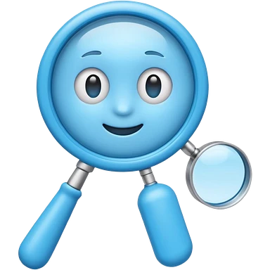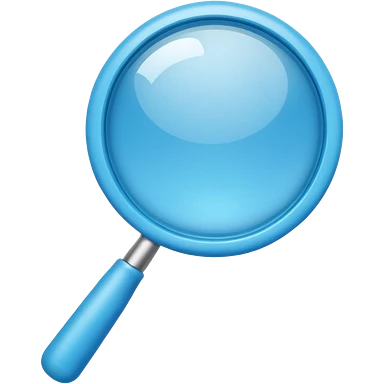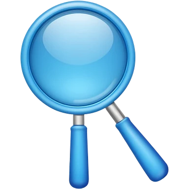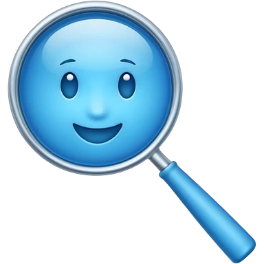 A toy-like 3D blue magnifying glass emoji, chunky proportions, soft plastic texture, bright sky-blue color, subtle highlights, simple and playful emoji style, clean background, centered emoji