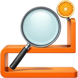 magnifying lens emoji style apple, lens positioned in bottom right, symbolizing searching emoji