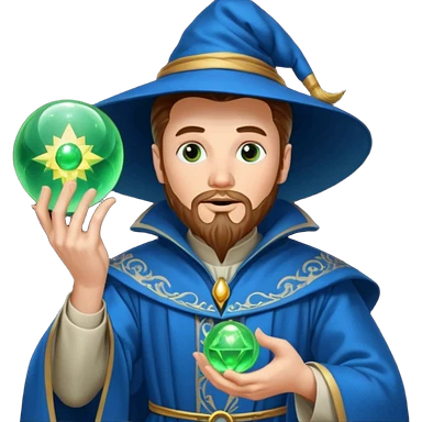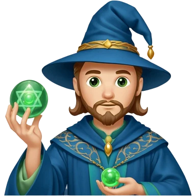 mago magician with blue eyes and red beard emoji