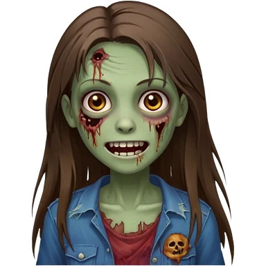 a zumbi girl with long brunette straight hair and light brown eyes emoji