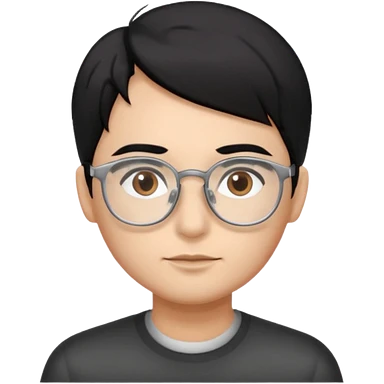 Cabelo preto liso olhos castanho cor da pele prata óculos emoji