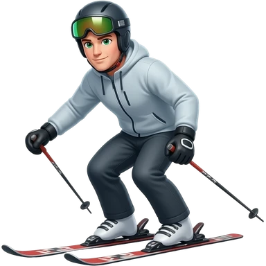 main with skis, no helment and green eyes emoji