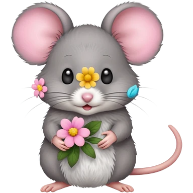 une petite souris avec une fleur emoji