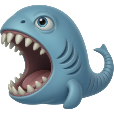 Make a bloop (a whale with a giant open mouth and make it blue) and it have shark teeth (and make it have gills) emoji