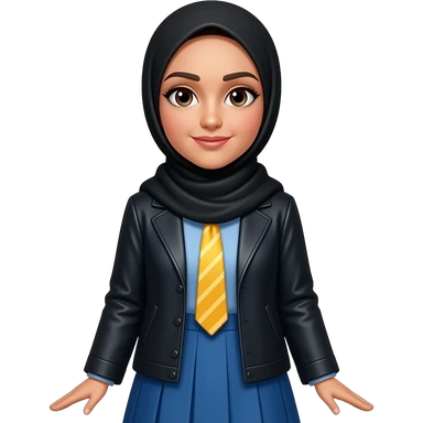 make someone whose name you think is Samrah, black hijab, pakistani skin, yellow tie, make her wear a blue shirt with a skirt and a jacket emoji