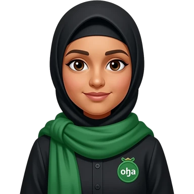 make someone whose name u think might be Alifna, make her wear a green scarf, black hijab,, skin normal indian skin, make her wear a green colour badge emoji