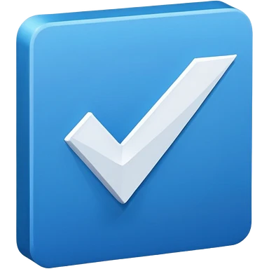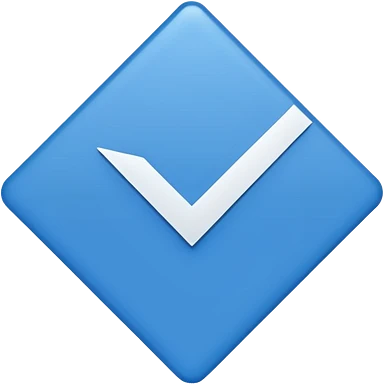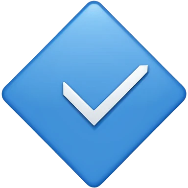 Make Make a symbol with a tilted blue colored square with a tick mark inside it in the middle. Make the edge of the square sharp. Make it normal tilt square and normal tick in the middle emoji
