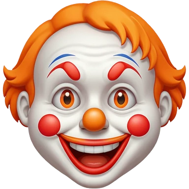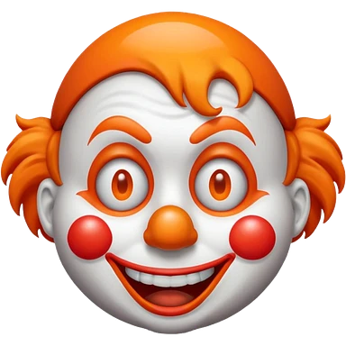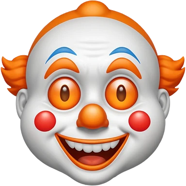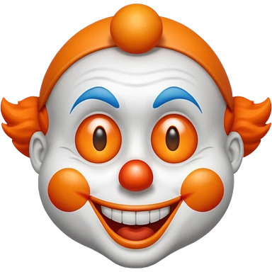 Make the clown emoji come up from the bottom, bounce, and land in the center. Then make it wink with the right eye, add a corrupted-file glitch effect, and finally make it disappear emoji