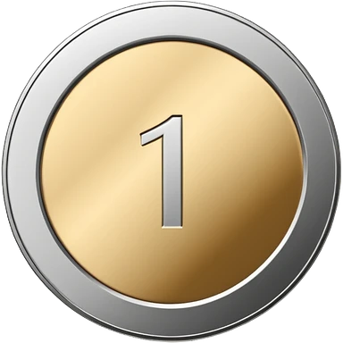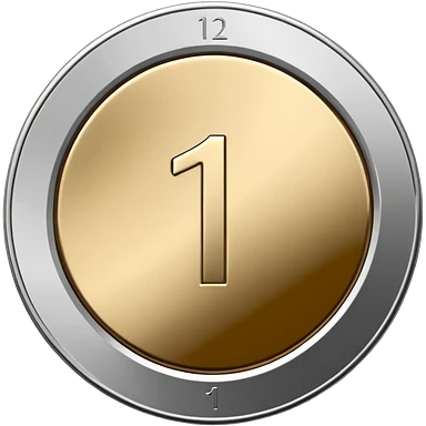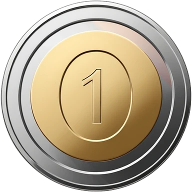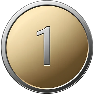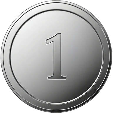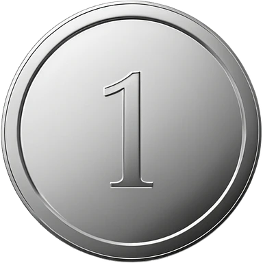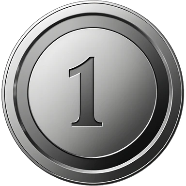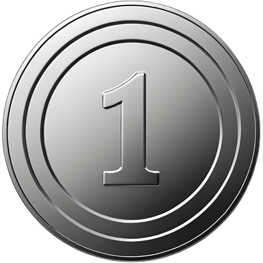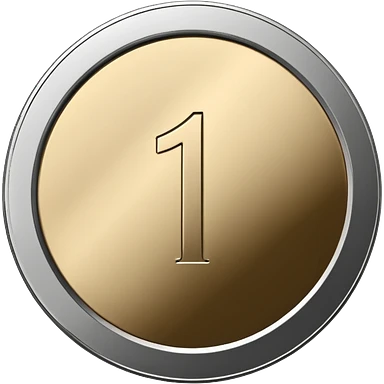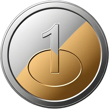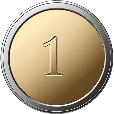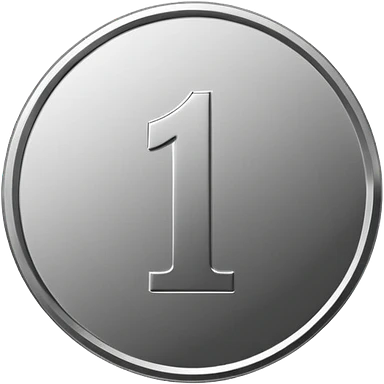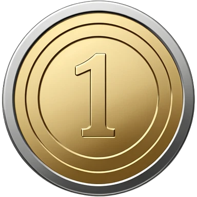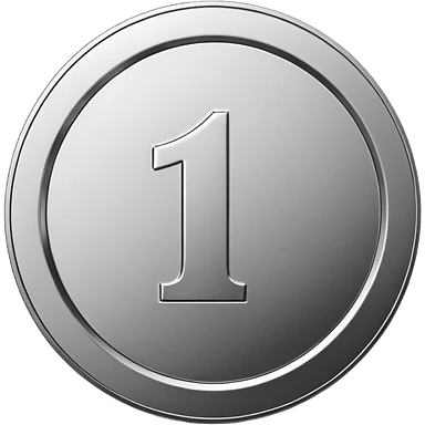 Emoji icon of a metal coin with engraved number 1, minimalist style, isolated, only metal color emoji