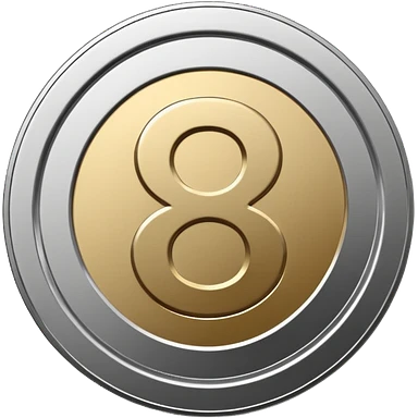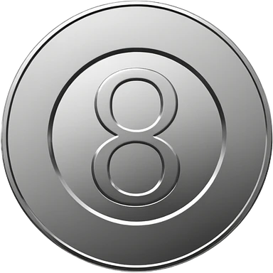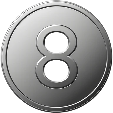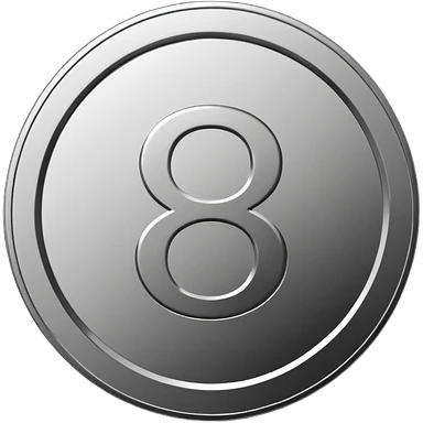 Emoji icon of a metal coin with engraved number 8, minimalist style, isolated, only metal color emoji