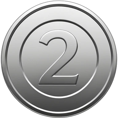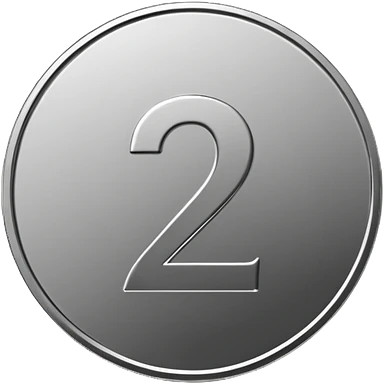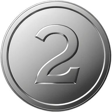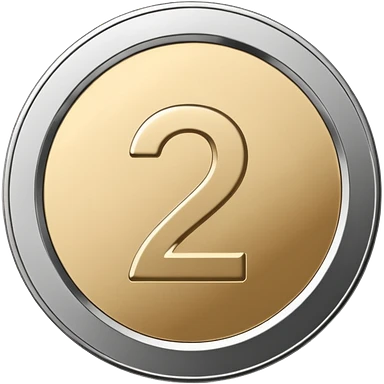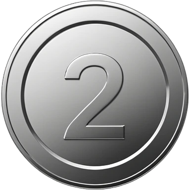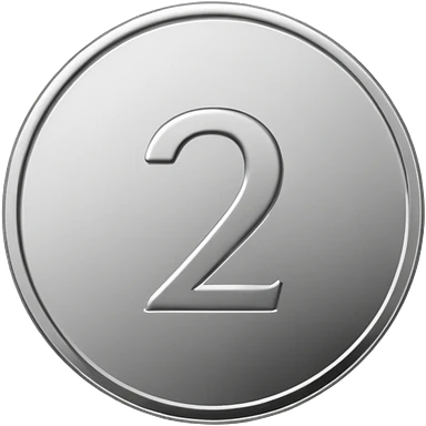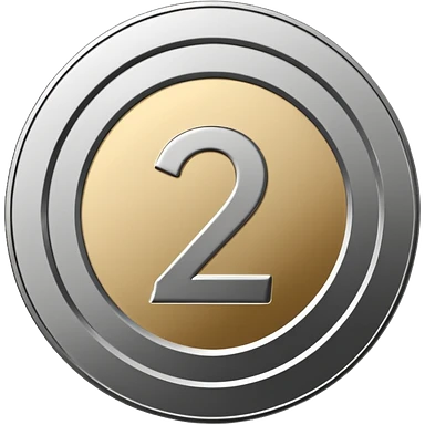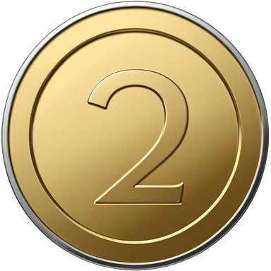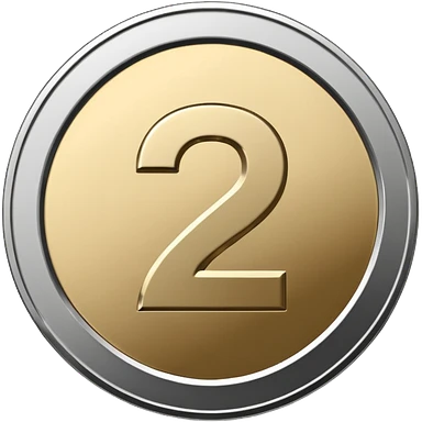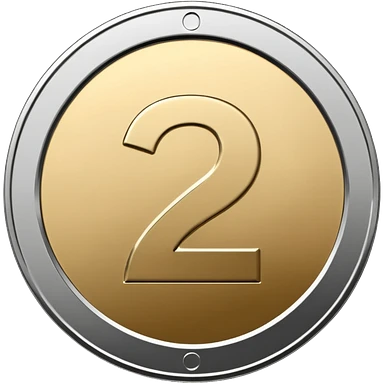 Emoji icon of a metal coin with engraved number 2, minimalist style, isolated, only metal color emoji