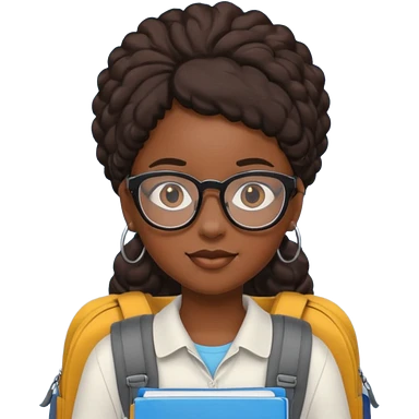 A young boy DEVELOPER WITH A backpack, black curly short hair, wearing glasses, a thin goatee, his skin is white, riding a scholar bus emoji