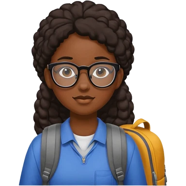 a young student girl with the backpack with bucket hat, brown wavy braided hair emoji