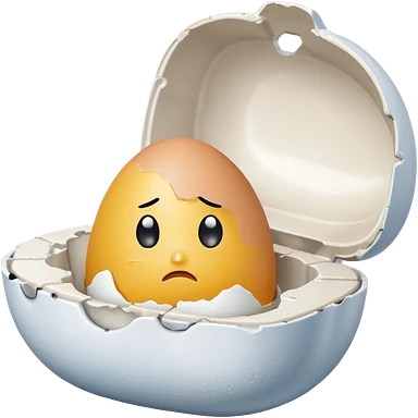 make a egg carton with only one egg inside to represent isolation. make the egg have a sad expression like a sad face with tears to communicate his worry emoji | AI Emoji Generator