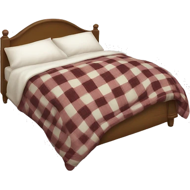 A comfy bed with a plaid throw draped over it and a white pillow emoji