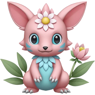 Cute Romantic Floral Digimon-Pokémon-Fakémon-hybrid-fusion, full body emoji