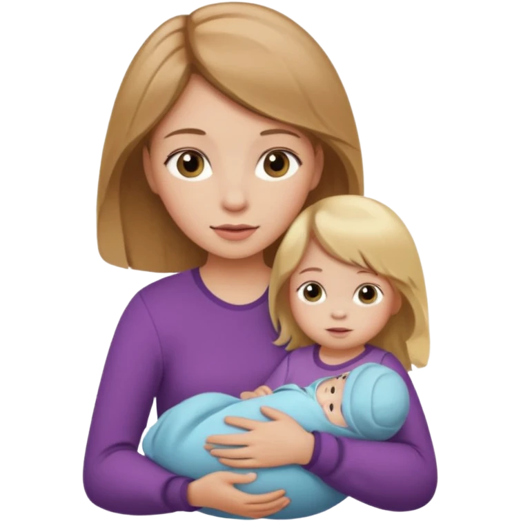 Make a girl with a baby in her arms. A girl should have light brown hair, and a baby girl should have blonde hair. emoji | AI Emoji Generator