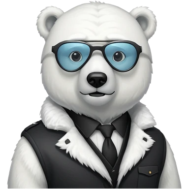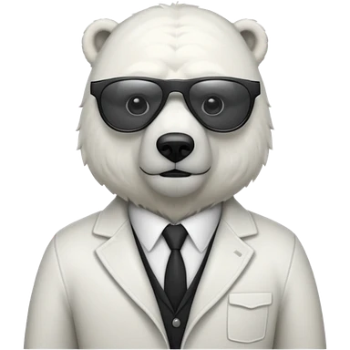 Make a humanoid polar bear with a secret agent outfit and dark black glasses emoji