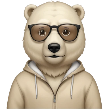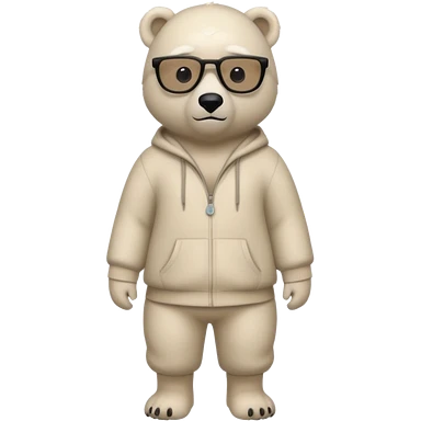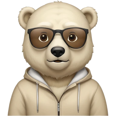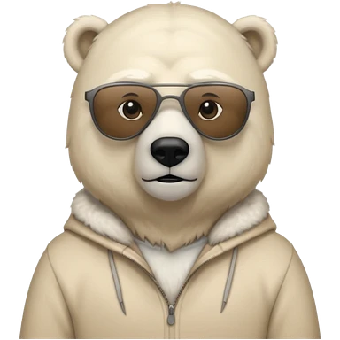 Make a humanoid polar bear with a secret agent beige outfit and dark black glasses emoji