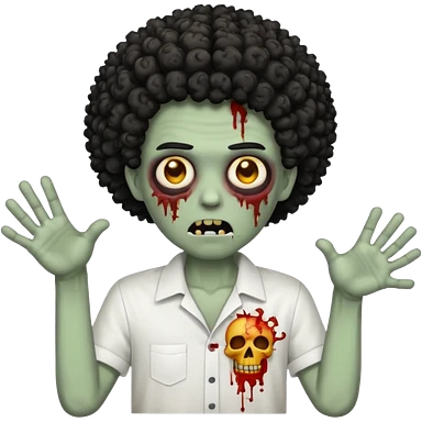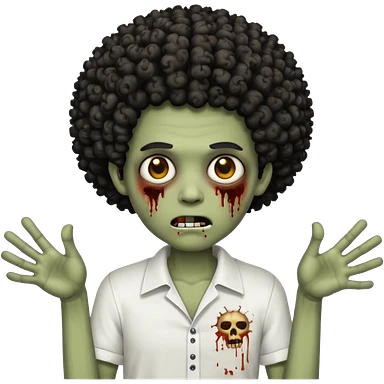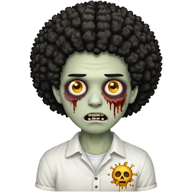 Make a image of a zombie with a curly Afro with a fade make it like a emoticon not as scary make hair black and with a white t shirt emoji | AI Emoji Generator
