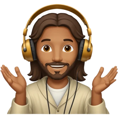 African American Jesus Christ giving someone a pair of headphones emoji