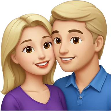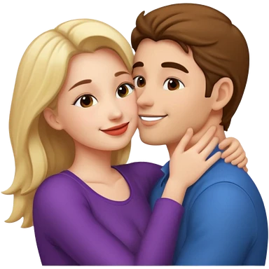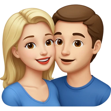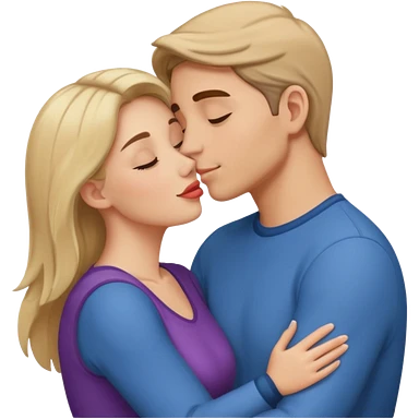 Make a kissing couple, a boy with wavy blonde hair having a middle part, wearing a grey hoodie and a girl with dark brown wavy hair wearing a white top with laces emoji | AI Emoji Generator