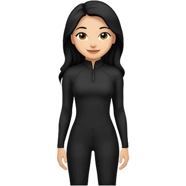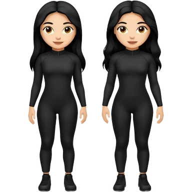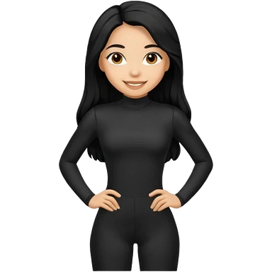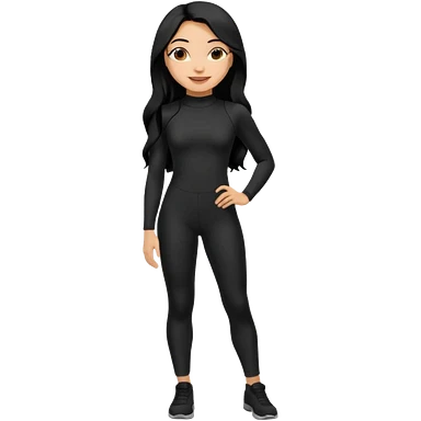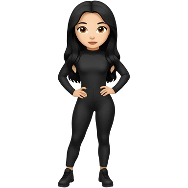 Make a lightskin Hispanic thick girl with long black hair. Wearing an all black tight jumpsuit emoji | AI Emoji Generator