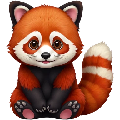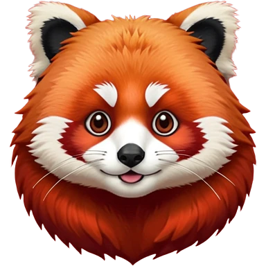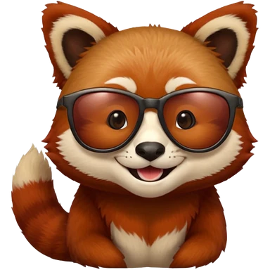 Make a logo of a red panda but instead of ginger fur, its fur is crimson red, and only the face, give the red panda shades and make it smile emoji | AI Emoji Generator