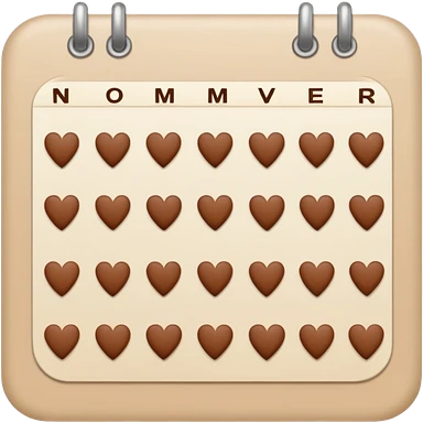 .make a November 1-30 2025 mini calendar with right brown hearts with cream colored dates wi rounded cornersI emoji | AI Emoji Generator