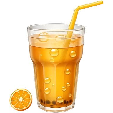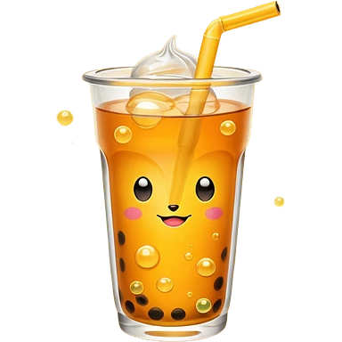 Make a orange tea boba with yellow bubbles cartoon emoji