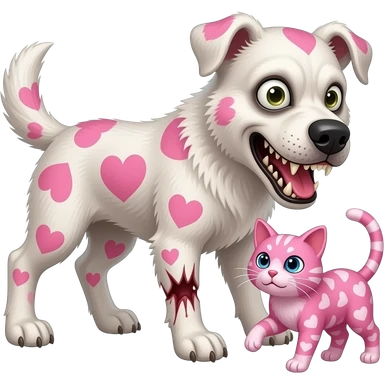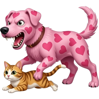 make a scary back dog hurting a cat pink with hearts and and hurt the dog emoji