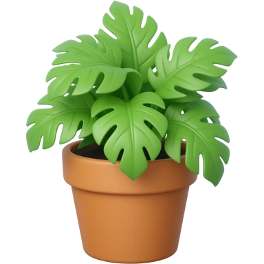 Potted plant, the potted plant contains Monstera deliciosa. emoji