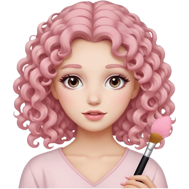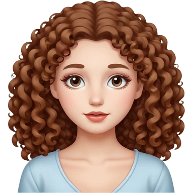 make a really curly hair, teen girl with glasses and little acne that looks like freckles longer like more than shoulder lengthcurly hair, and pretty withe makeup on giving clean girl vibes, and make her have tan skin more blush and really pretty, and the har is really really long emoji | AI Emoji Generator