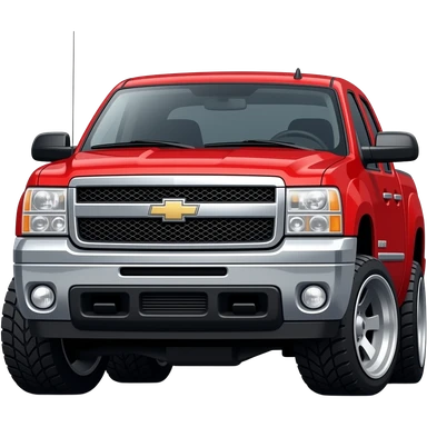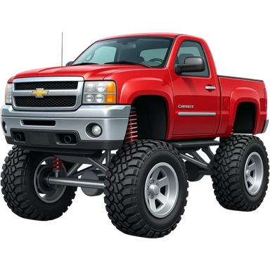Make a red 08 Silverado jacked up on wide black rims emoji | AI Emoji Generator
