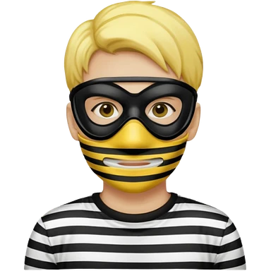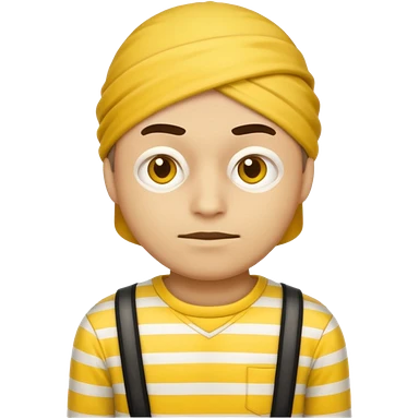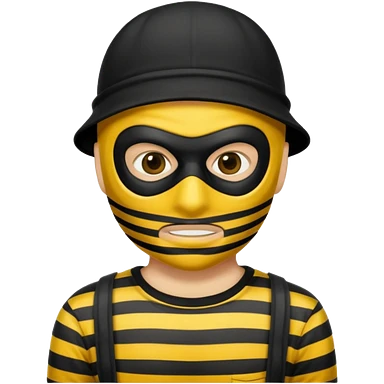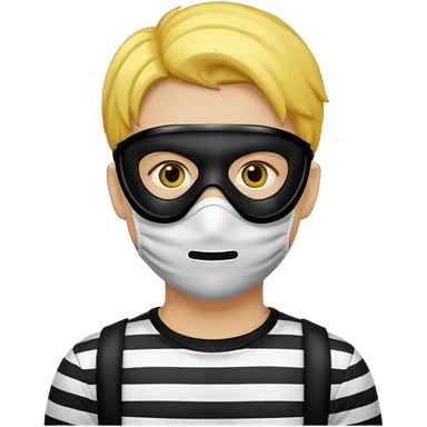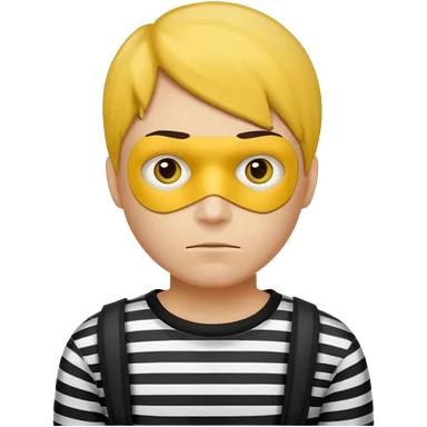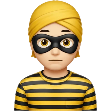 Make a robber emoji with yellow skin and white and black shirt with a mask thats black emoji