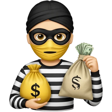 Make a robber emoji holding a bank cash with black white pattern emoji