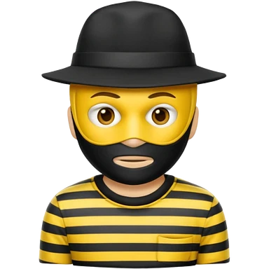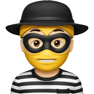 Make a robber emoji with yellow skin and white and black shirt with a mask thats black and make a hat on him emoji