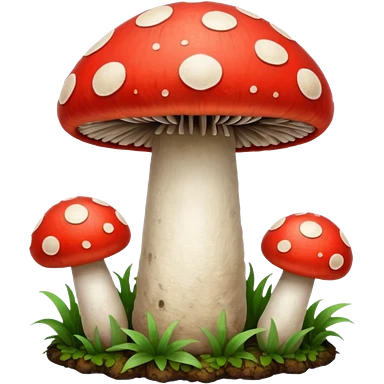 create a mushroom centred emoji, with a representation of the system behind it - an idea of being connected to a regenerative system and growth. Make the mushroom red and white emoji